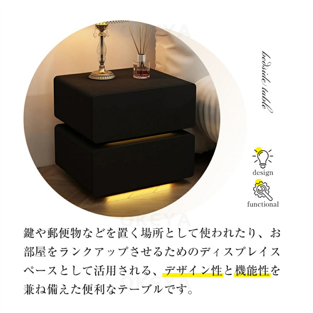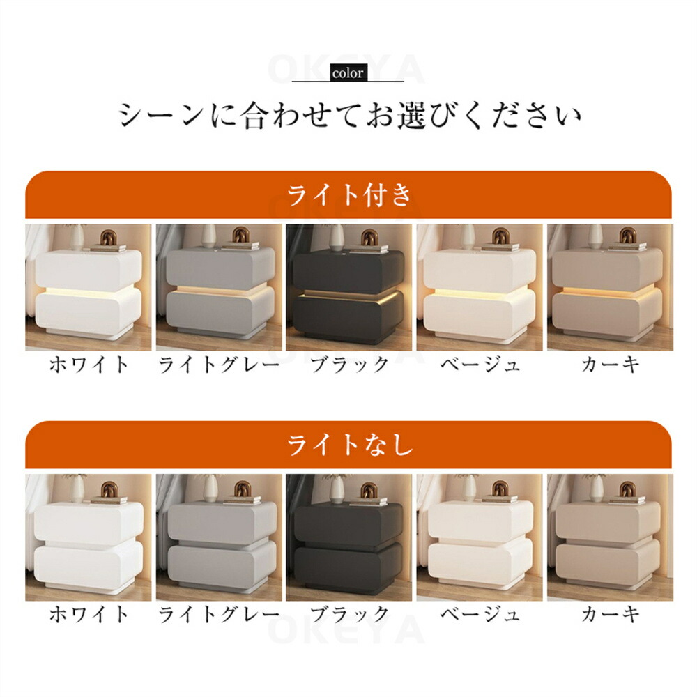 ナイトテーブル サイドテーブル 人感セ ホワイト ライトグレー ブラック ベージュ カーキ ライトなし ライト付き
