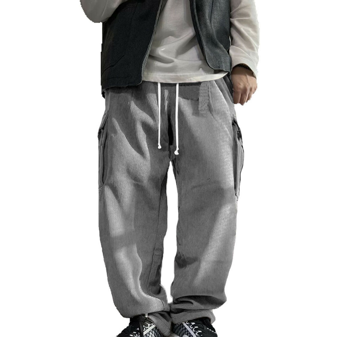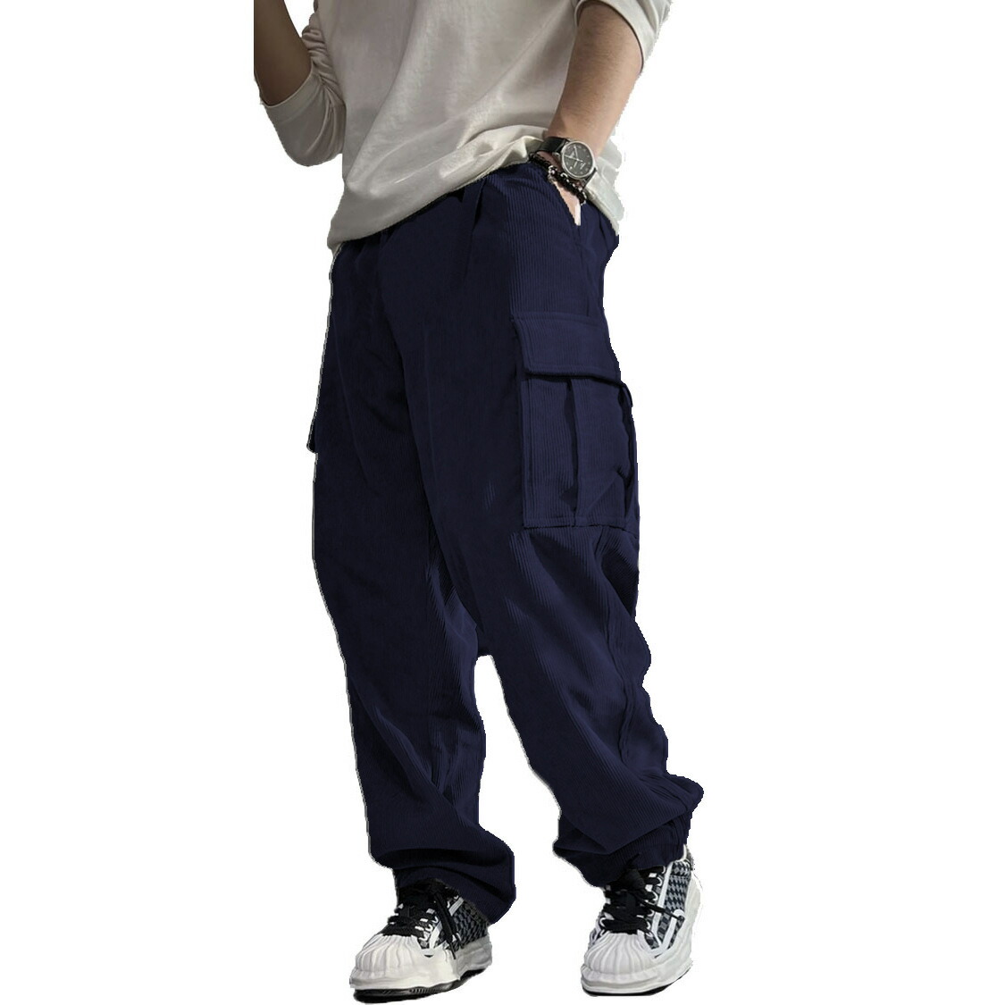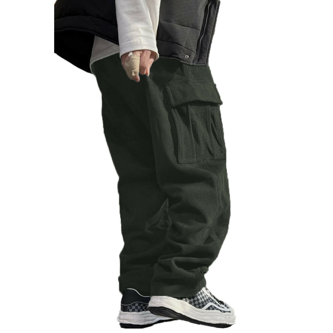 コーデュロイ カーゴパンツ メンズ 秋 ズボン パンツ 続々登場 ネイビー ブラック グレー グリーン ブリックレッド M L XL 2XL 3XL