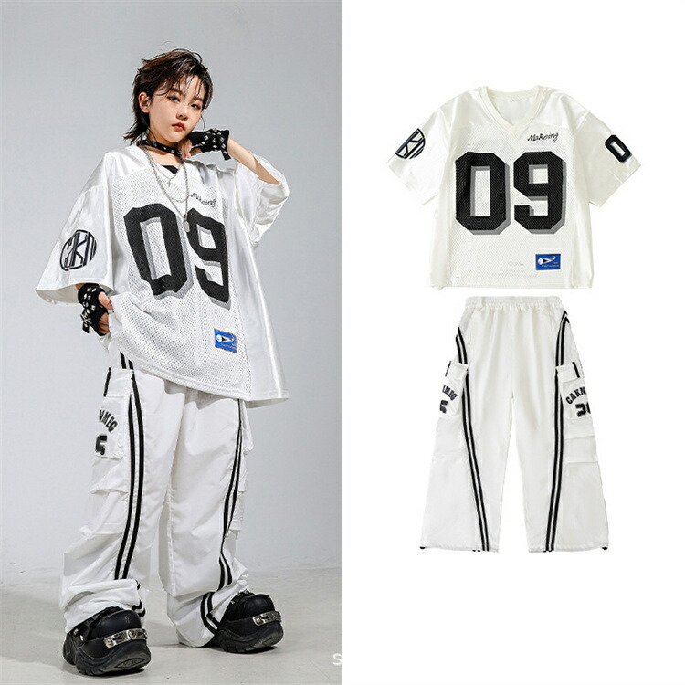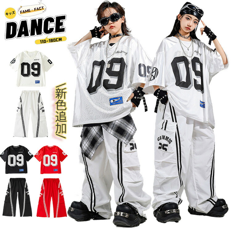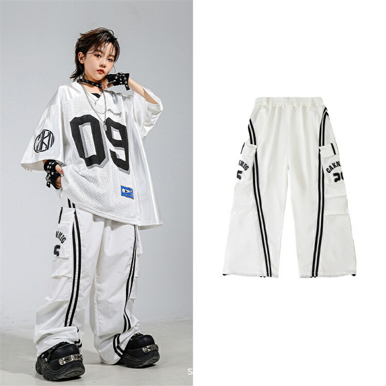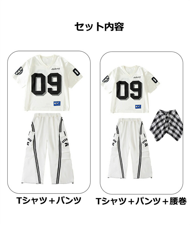 ユニフォーム ダンス衣装 キッズ ヒッ キッズ スーツ カジュアルセットアップ カジュアルパンツセット 新登場! 白 黒 赤 Tシャツ パンツ Tシャツ+パンツ Tシャツ+パンツ+腰巻