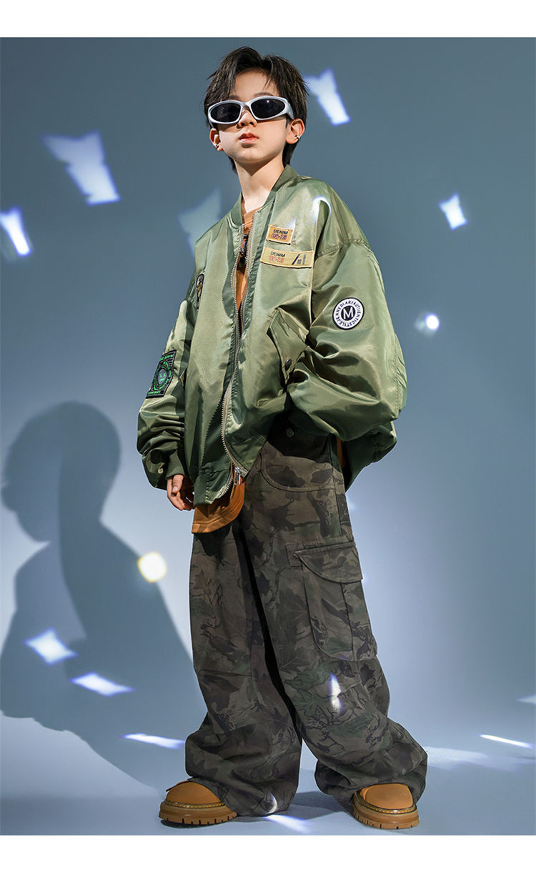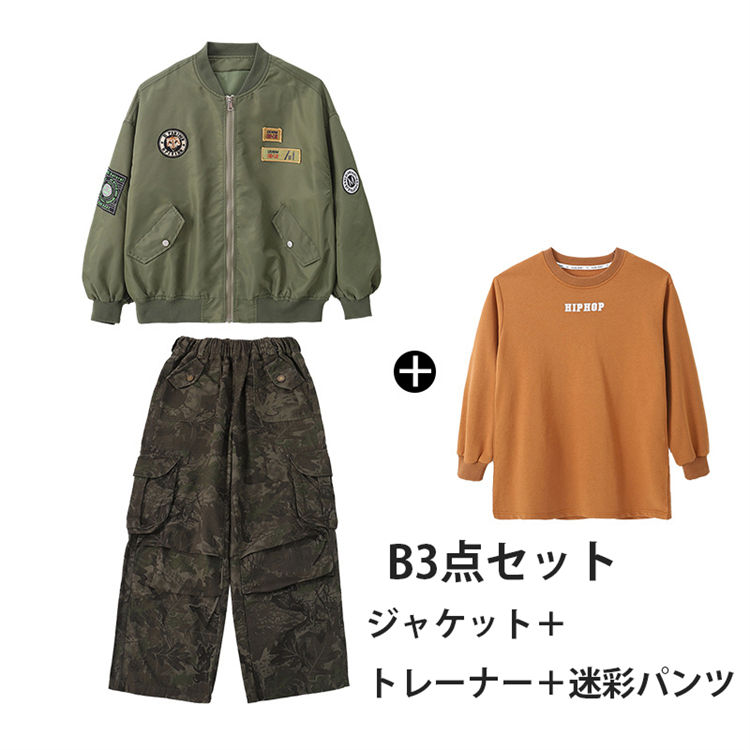 スタジャン 子供服 ヒップホップ セッ キッズ スーツ カジュアルセットアップ カジュアルパンツセット 早い者勝ち ジャケットのみ 迷彩パンツのみ カーキパンツのみ トレーナーのみ A2点セット B2点セット A3点セット B3点セット 110cm 120cm 130cm 140cm 150cm 160cm 170cm 180cm