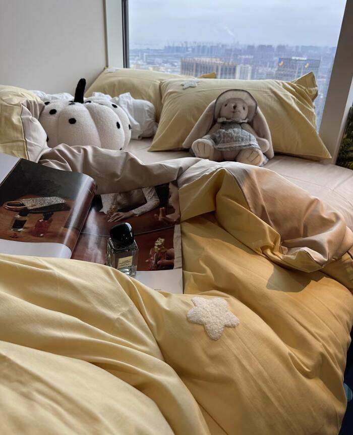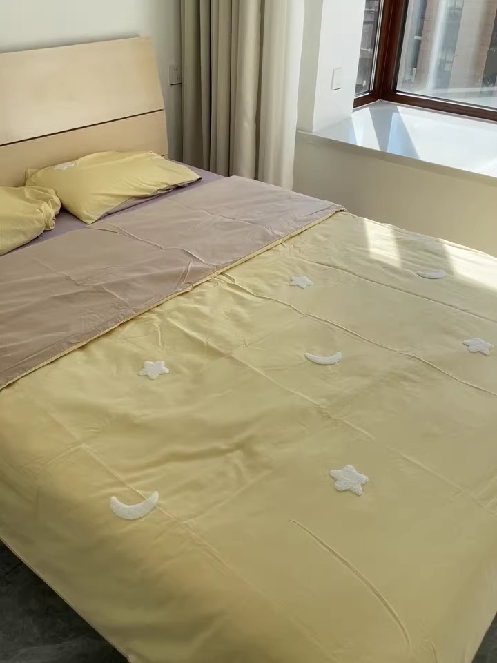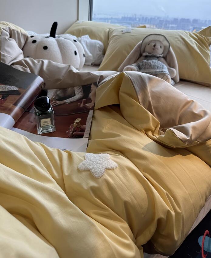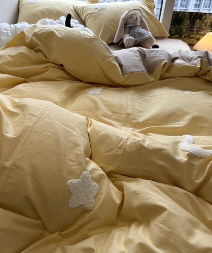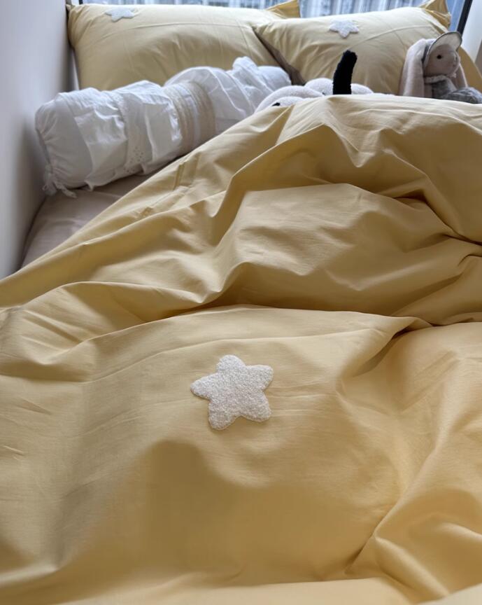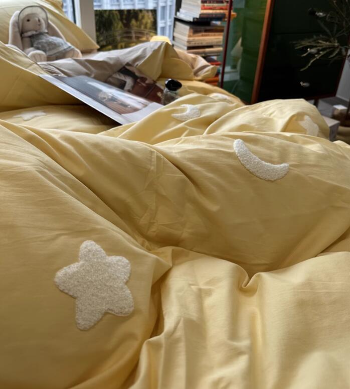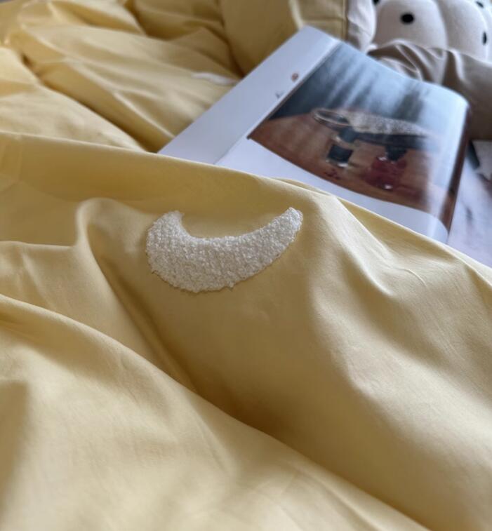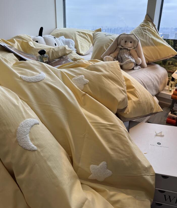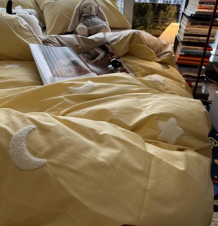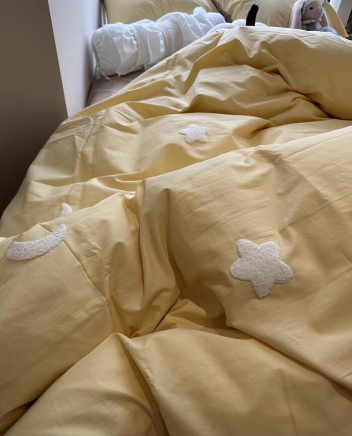 布団カバーセット 可愛い星月 黄色 洗 インテリア 寝具 収納 人気 シングル(3点セット) フラットシーツタイプ1.5m フラットシーツタイプ2.0m ボックスシーツタイプ1.5m ボックスシーツタイプ1.8m