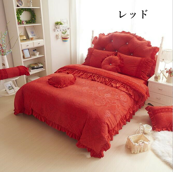 布団カバー3点セット 宮廷風 ベッドス インテリア 寝具 収納 特集 ベージュ ピンク ホワイト パープル グリーン レッド