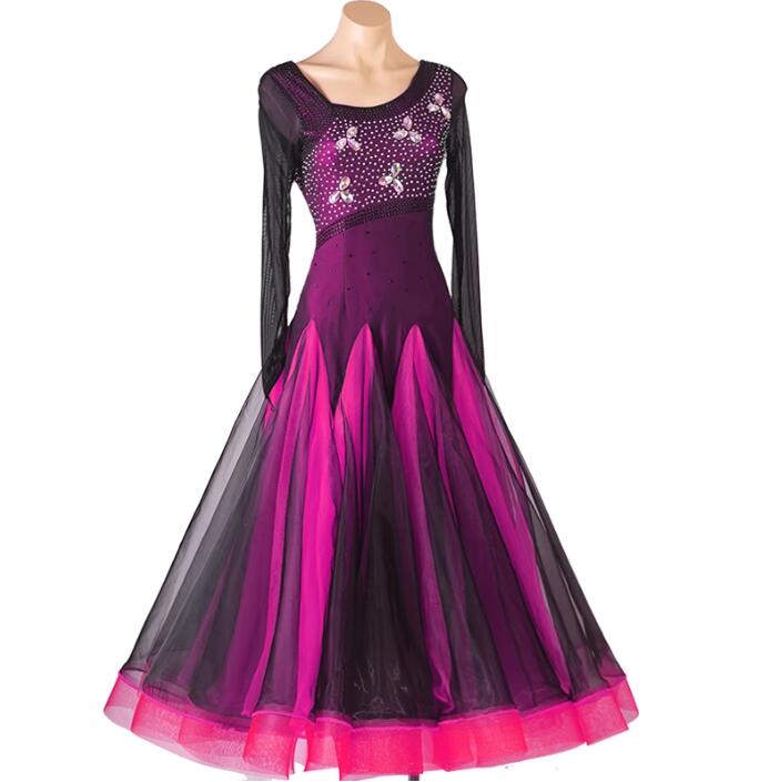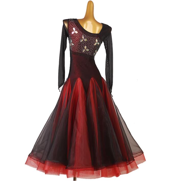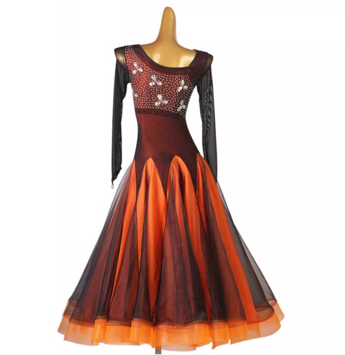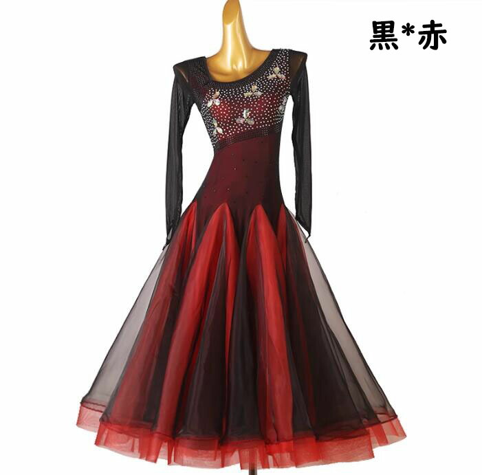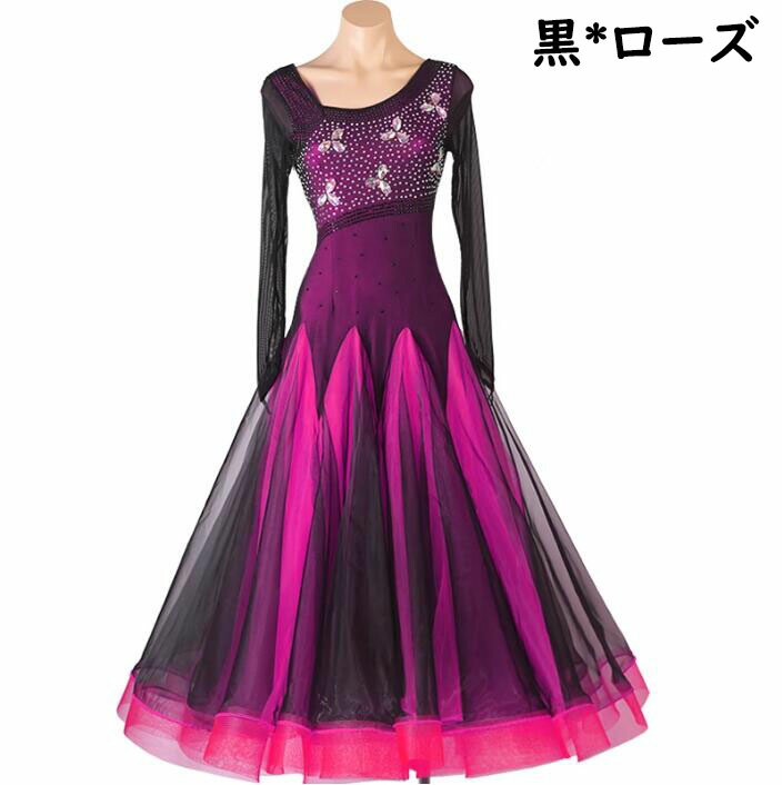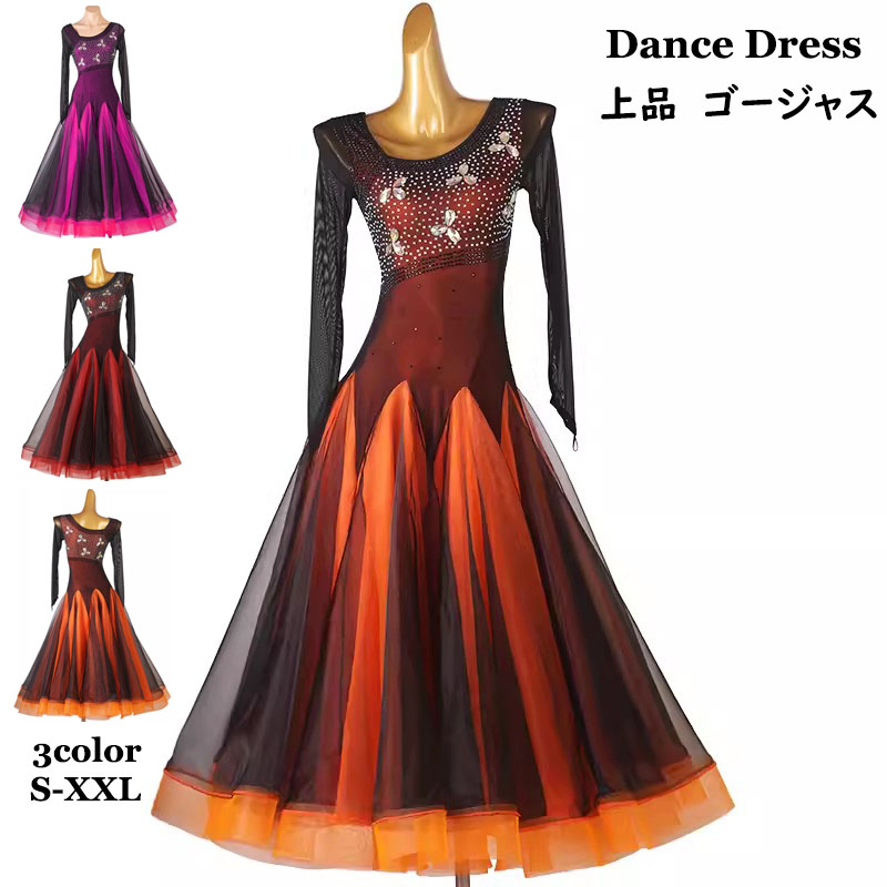 社交ダンスドレス スタンダードドレス スポーツ アウトドア 人気 S M L XL XXL 黒*オレンジ 黒*ローズ 黒*赤