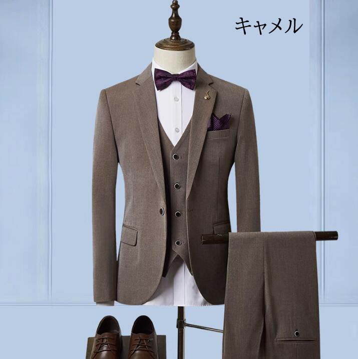 メンズスーツ 3点セット 礼服 上質 スーツ セットアップ スーツ 特集 S M L XL XXL 3XL 4XL 5XL キャメル ブラック グレー