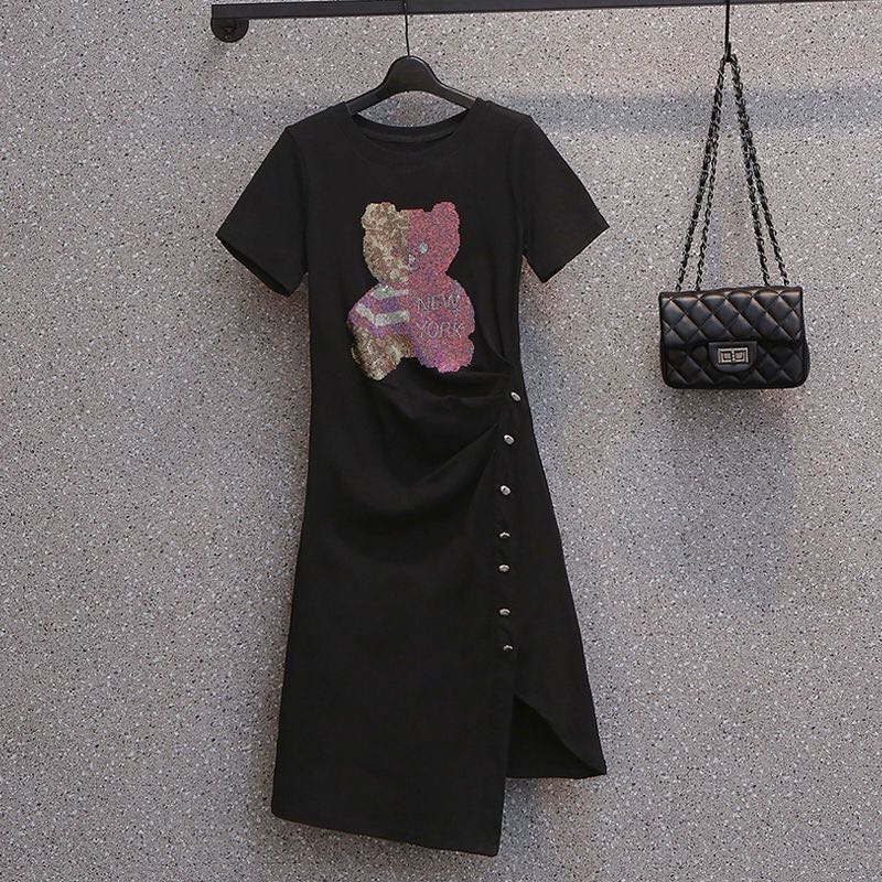 レディース Tシャツワンピース 夏 半 ワンピース 超目玉商品 グレー ブラック M L XL 2XL 3XL 4XL