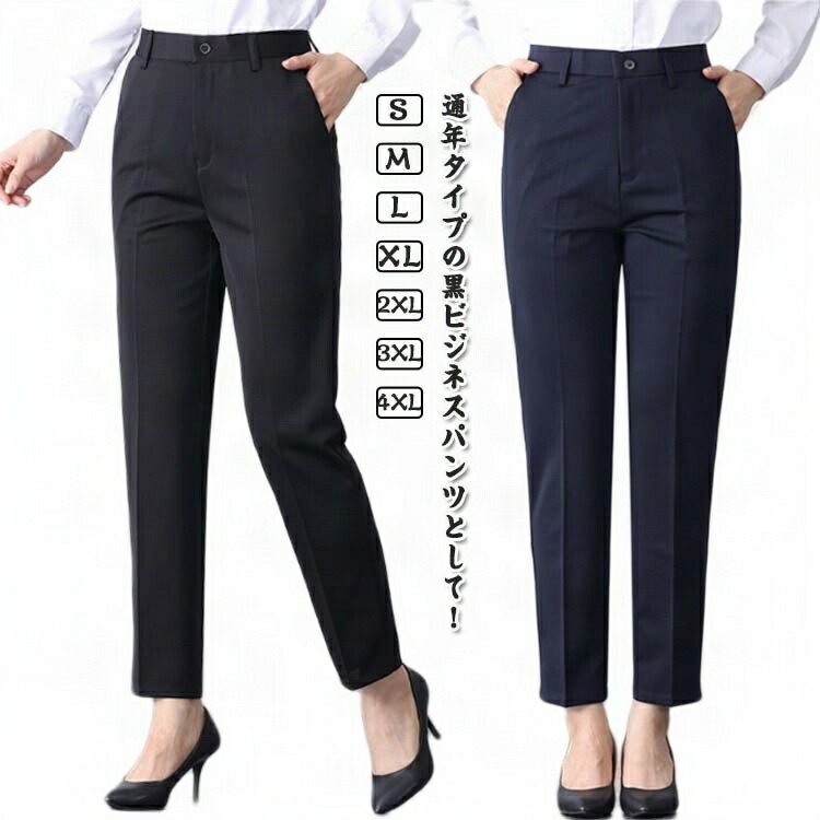 スラックス ストレッチ ストレートパンツ 制服 ズボン パンツ 無地 ゆったり スラックスハンガー 秋冬 大人 脚長 ボトム ビジネス ミセス スリム 仕事着 オールシーズン 黒パンツ 黒ズボ 発表会