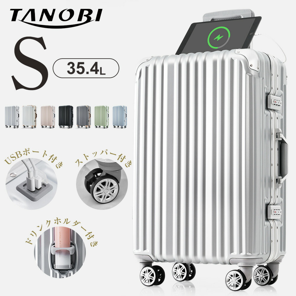 スーツケース Sサイズ 機内持ち込み Mサイズ Lサイズ USBポート ドリンクホルダー ストッパー付きキャスター キャリーケース キャリーバッグ TSAロック TANOBI suit フレームタイプ