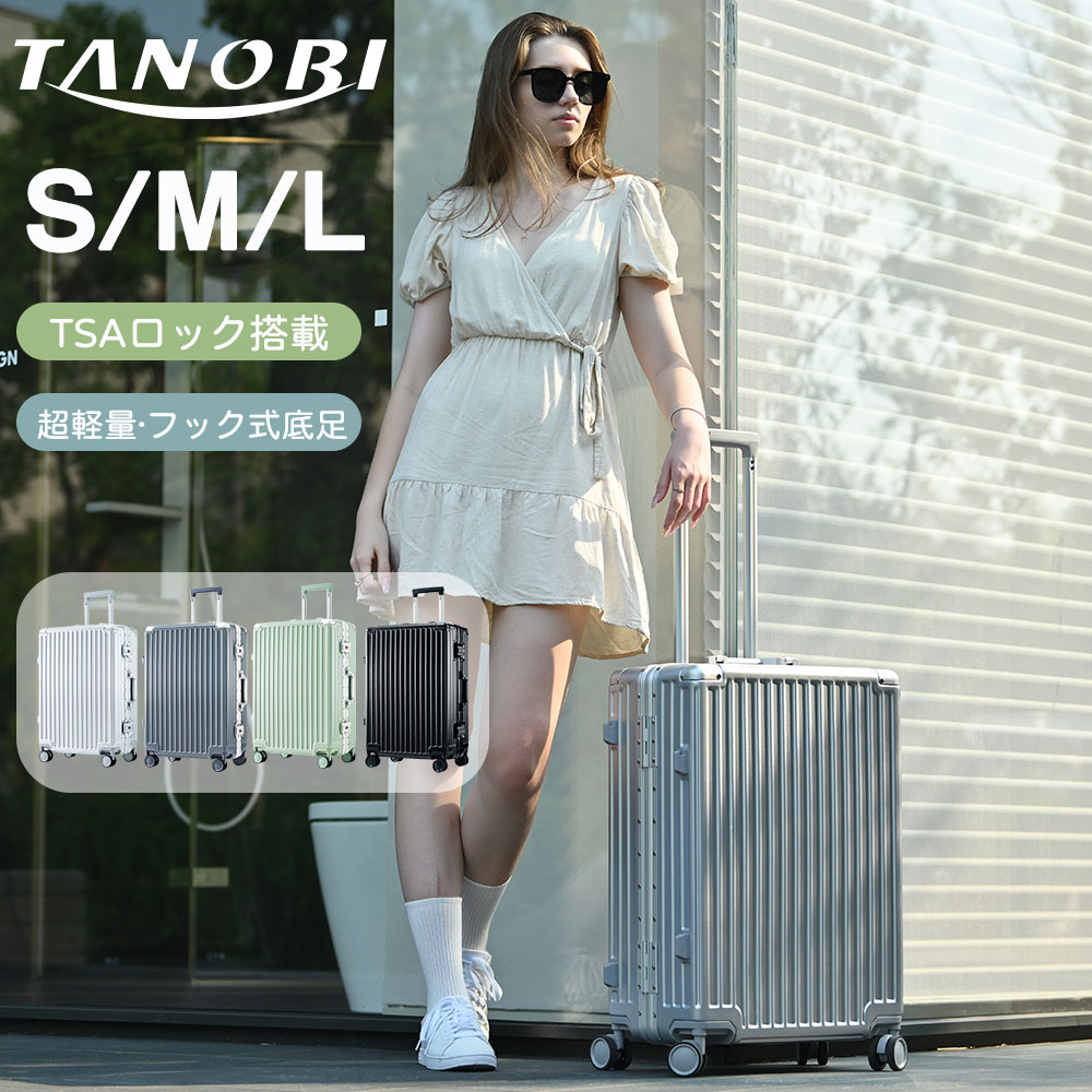 スーツケース Mサイズ フレームタイプ キャリーケース アルミ キャリーバッグ フック式底足 防水ポケット 軽量 おしゃれ 静音 47日 TSAロック 中型 旅行 修学TANOBI高級感 HL9 海外