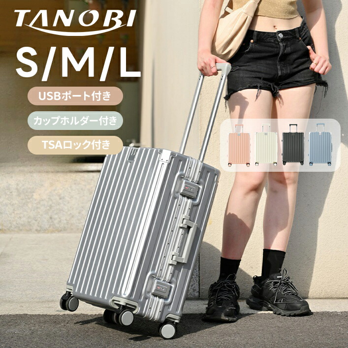 スーツケース Sサイズ ストッパー付き USBポート 容量拡張 キャリーバッグ キャリーケース スマホスタンド ドリンクホルダー TSAロック 2日 7日 TANOBI クリスマス 3日