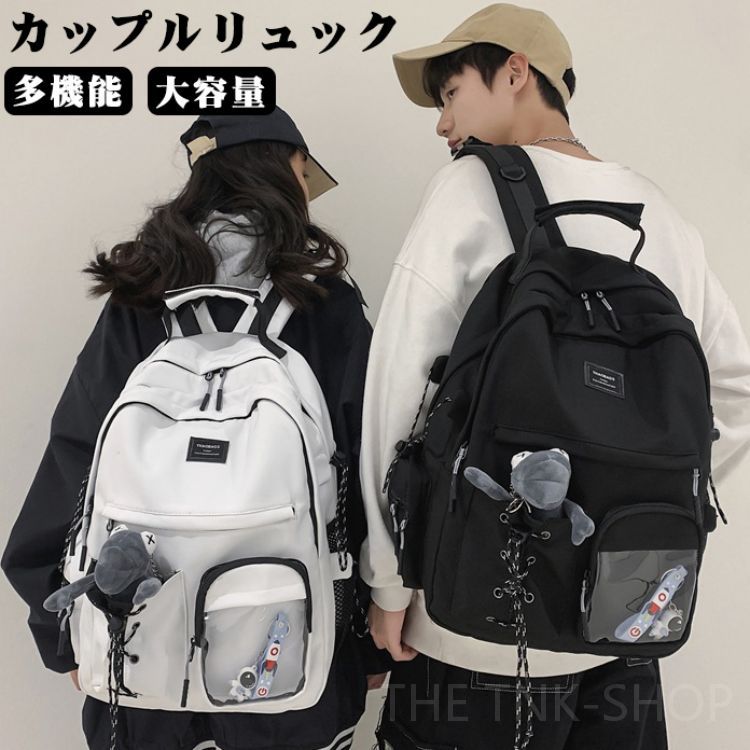 リュック レディース メンズ カップル ペア バックパック リュックサック 透明前ファスナー袋 韓国 多機能 大容量 通学 通勤 高校生 女子 中学生 便利 入学式 大学生