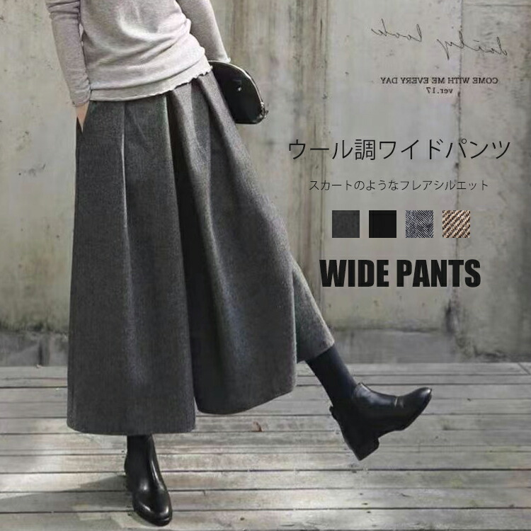 ワイドパンツ 秋冬 ウール調 ガウチョパンツ レディース 九分丈 暖かい ロングパンツ 冬 ゆったり 大きいサイズ 体型カバー アンクルパンツ ウエストゴム 細見えフレアパンツ スカーチョ ボリ 美脚