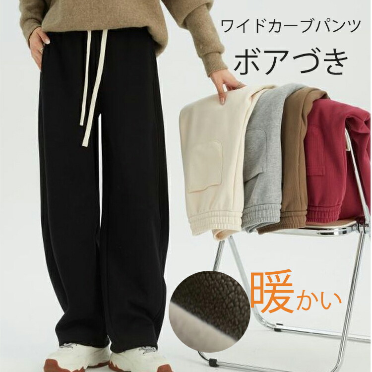 20%OFF 本日P5倍 ワイド カーブパンツ レディース パンツ 裏起毛 ワイドパンツ スウェット 秋冬 ウエストゴム ゆったり 体型カバー ボアパンツ 暖かい スウェットパン ジャージ