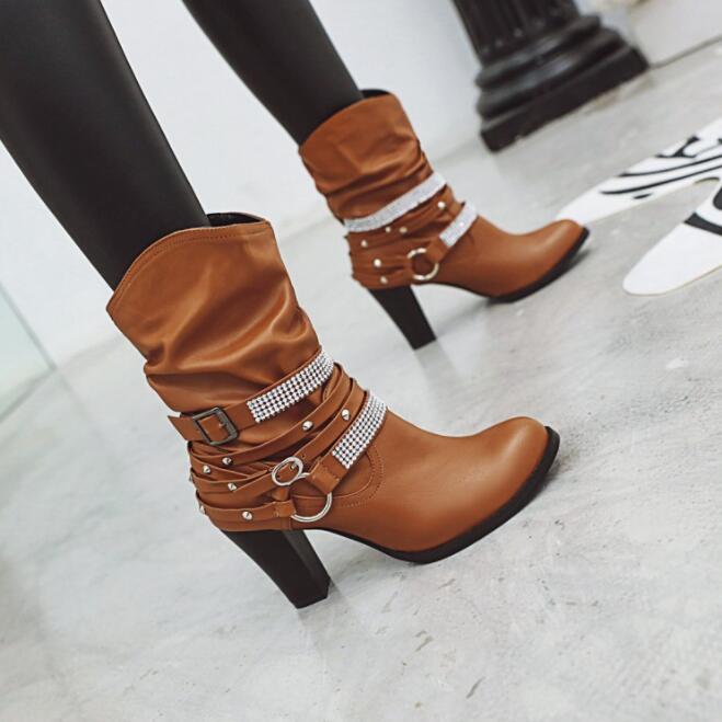 ブーツ レディース ジョッキーブーツ ショートブーツ ミドル くしゅくしゅ チャンキーヒール 大きいサイズ 楽ちん 美脚 ブーツ