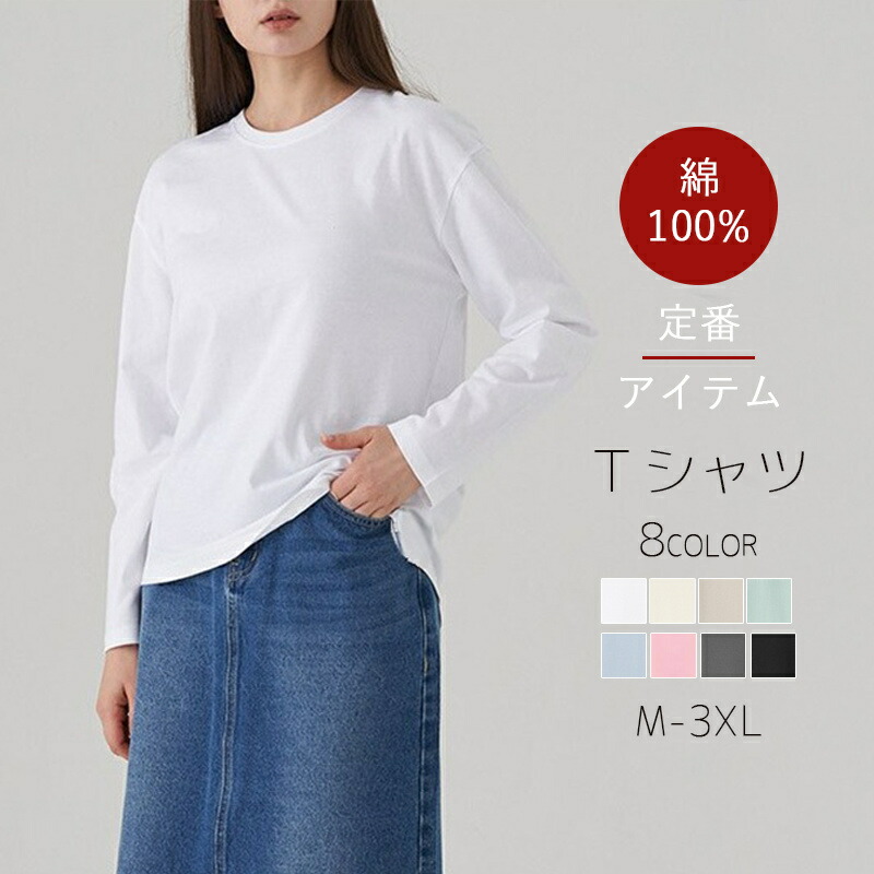 【綿100%のベーシックtシャツ!】長袖 シャツ レディース 綿100% 薄手 ロンティー ロングティーシャツ ろん 大人 通学 通勤 送料無料 コーデ 通勤 ゆったり シンプル