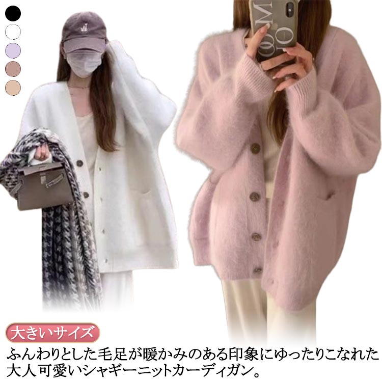 シャギーカーディガン シャギーニット シャギーニットカーディガン 羽織り 長袖 カーディガン 冬 レディース ニットカーディガン 体型カバー 起毛ニット ドロップ ニットトップス