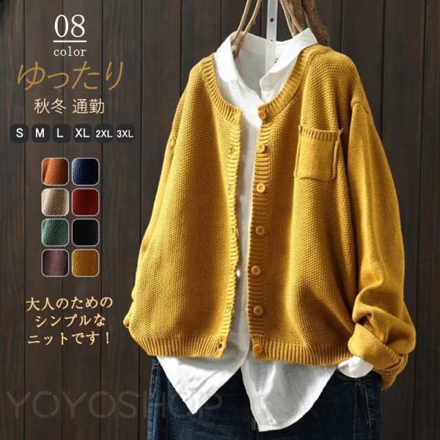 カーディガン レディースニット セーター トップス 綿 羽織り 長袖 アウター 体型カバー ゆったり きれいめ 着 オーバーサイズ