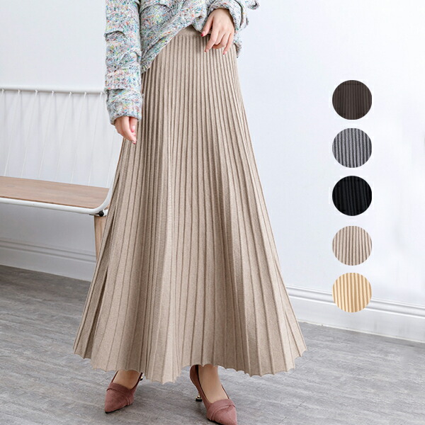 ニットスカート マキン丈 レディース ロングスカート ライン プリーツニットスカート 春 秋冬 ハイウエストスカート