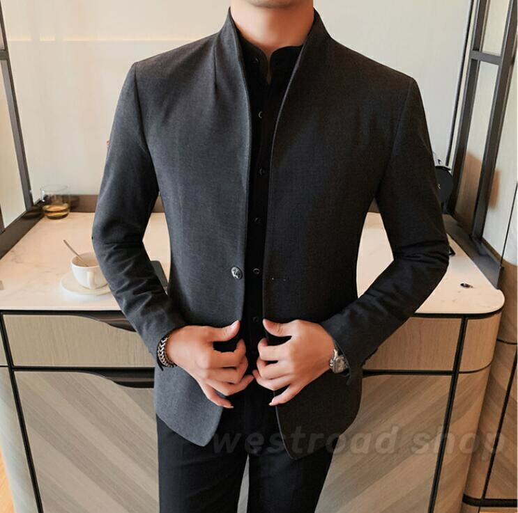 テーラードジャケット メンズ ビジネススーツジャケット スタンドカラー 立ち襟 20代30代40代 通勤 結婚式 紳士服 披露宴 二次会 パーティー フォーマル 卒業式 成人式 韓国風 スリムフィット