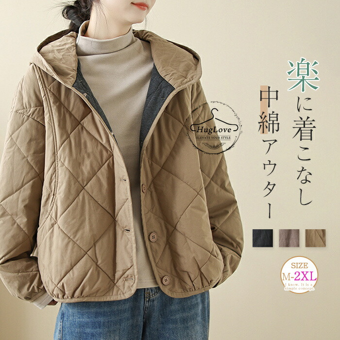 パーカー レディース 中綿 ジャケット ブルゾン フード付き キルティングジャケット 大きいサイズ アウター ゆったり キルトコート ポケット付き あったか きれいめ 大人可愛い おしゃれ 暖か