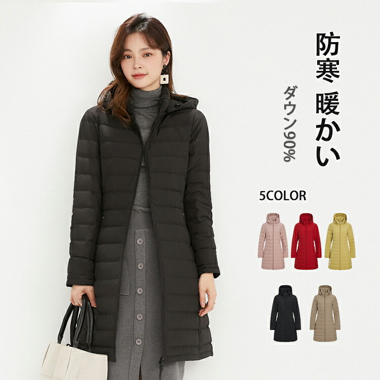 ダウンコート レディース ダウンジャケット ロングコート 中綿 ミディアム丈 スタンドカラー フード付き 厚手 冬服 軽量 防風 暖かい 防寒コート あったか シンプル カジ 大きいサイズ