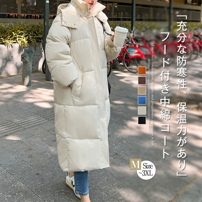 充分な防寒性、保温力があり、体をしっかりと暖めてくれるダウンコート。 中綿コートロングレディース 防寒コート お出かけフード付き 大きいサイズ ゆったり 着痩せ 可愛い