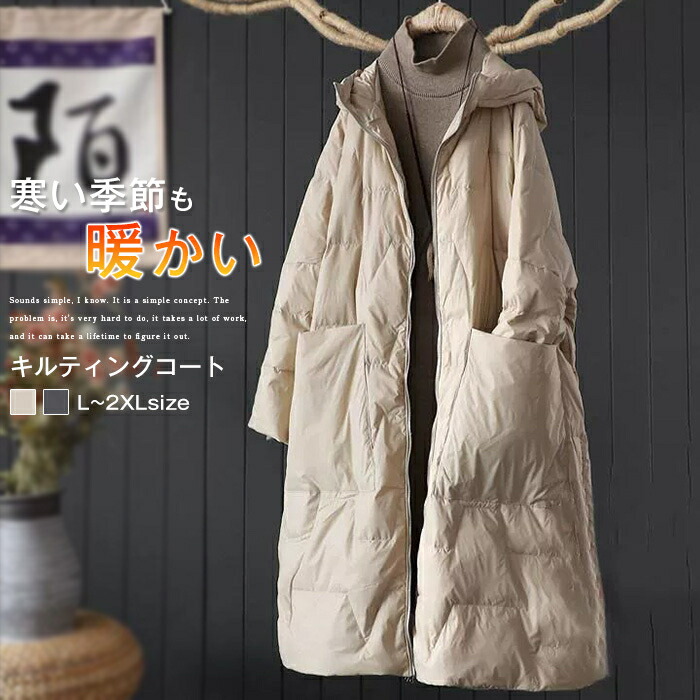 ダウンコート レディース ロング きれいめ コート 秋 冬 キルティングコート 中綿 キルティング フード付き アウター 大きいサイズ 無地 ゆったり ビッグシルエット