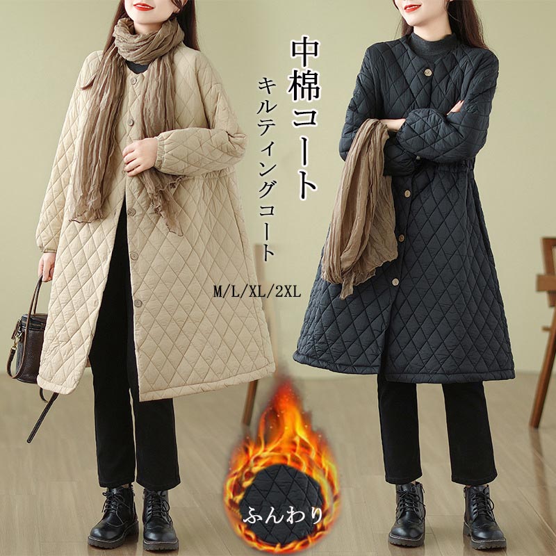 キルティングコート 秋冬 あったか キルティングジャケット 中綿ジャケット 中綿コート コート アウター 前開き ポケット付き 防寒コート