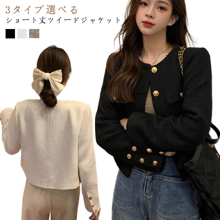 ツイードジャケット ノーカラ― フォーマル ツイード ゴールドボタン 2色選べる