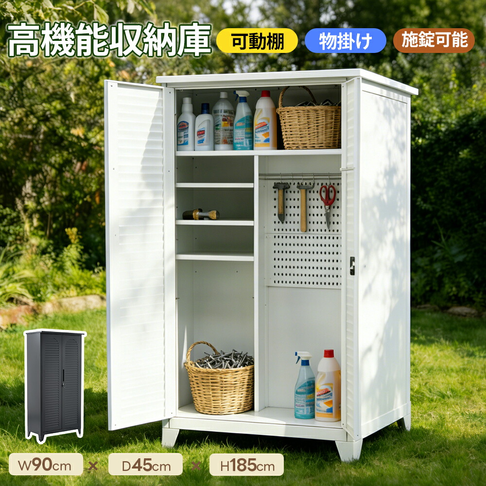物置 収納庫 多機能 可動棚 倉庫 スチール物置 高さ185cm 大型倉庫 室外収納庫 施錠可能 屋外収納キャビネット 両開きドア ロッカー スチールロッカー スチール製 収納ボード付き 収 かぎ付き