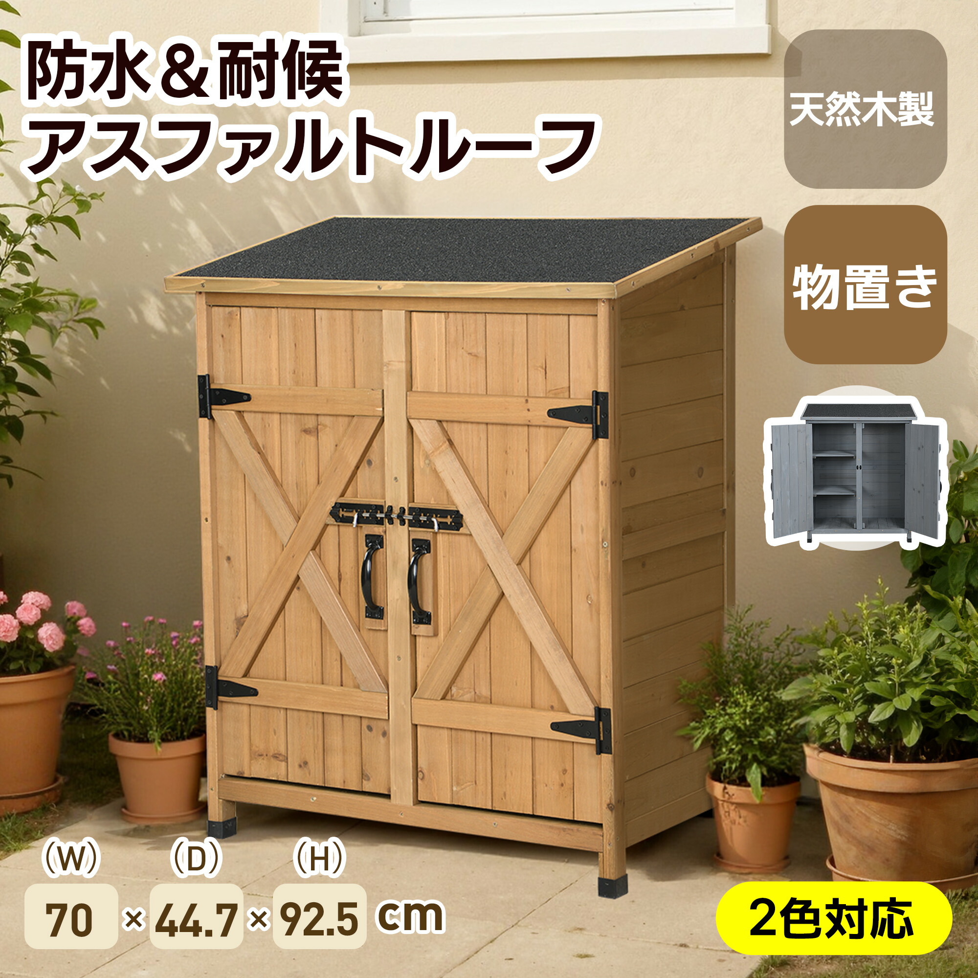 物置 天然木 倉庫 屋外 屋外収納棚 木製物置 ベランダ 物置き フック ガーデニング 木製 ガーデン収納庫 観音開き diy 庭 収納 小型 おしゃれ ナチュラル ラック