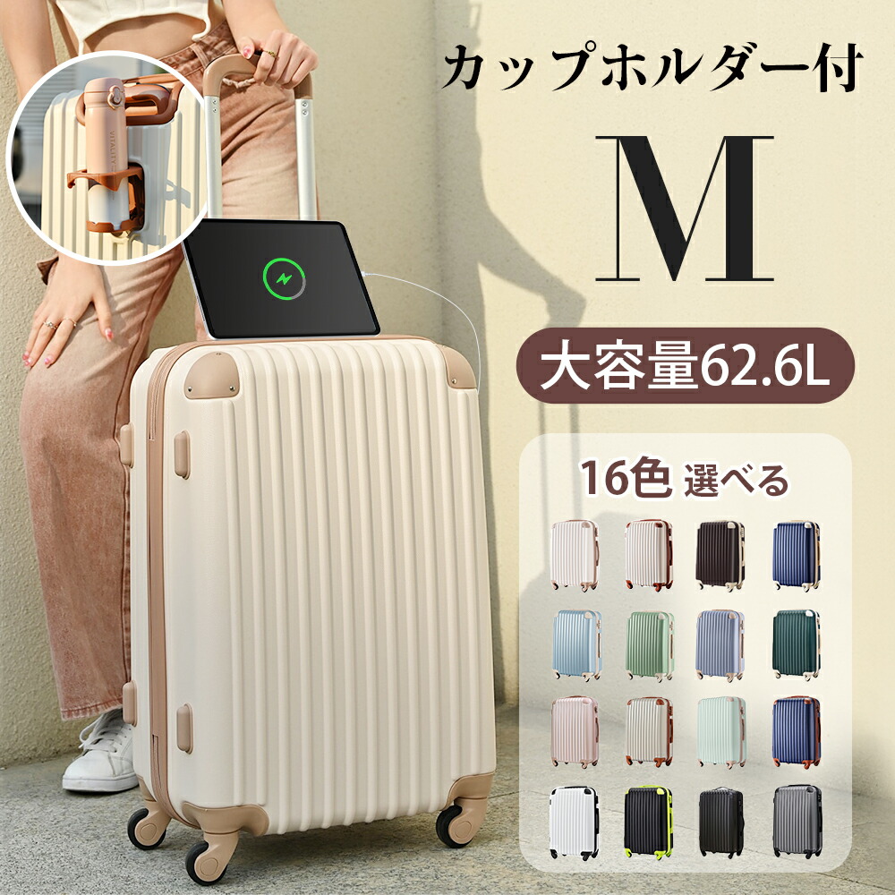 スーツケース Mサイズ 軽量 キャリーバッグ キャリーケース 超軽量 TSAロック搭載 USBポート付き ドリンクホルダー コーヒー 静音 人気 修学旅行 大容量 かわいい おしゃれ T9088 頑丈