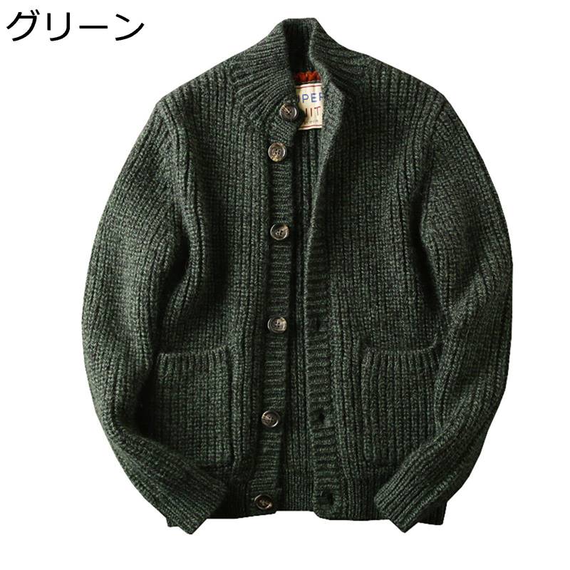 100%ウール ニット メンズ カーディガン 長袖 秋冬 厚手 カシミアタッチ 暖かい 防寒 防寒性 防風 保温 立ち襟 トップス カジュアル ゆったり 大きいサイズ セーター コート 上着 前開き