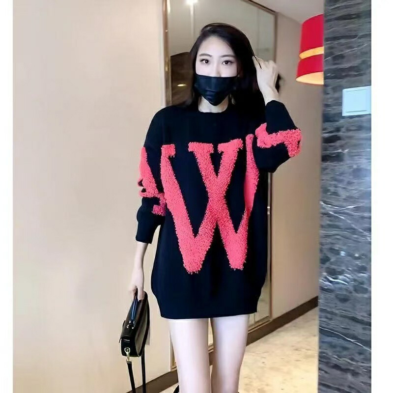 ニット セーター レディース 長袖 秋冬 大きいサイズ ロング 英文字 トップス