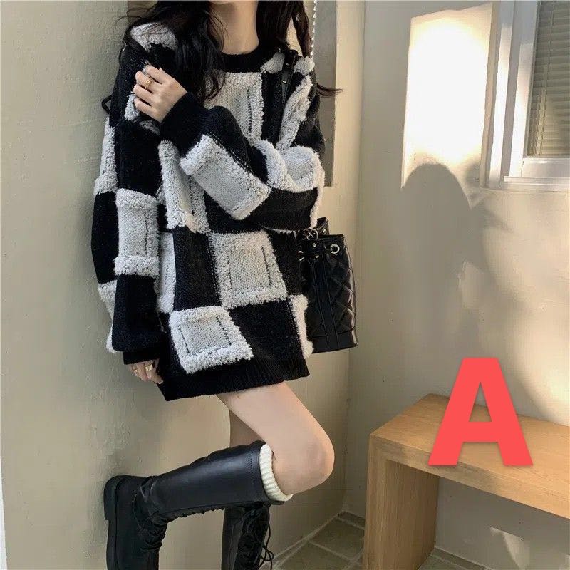 レディース セーター ニット トップス 秋冬 ゆったり 大きいサイズ チェック柄 LUDA276 可愛い