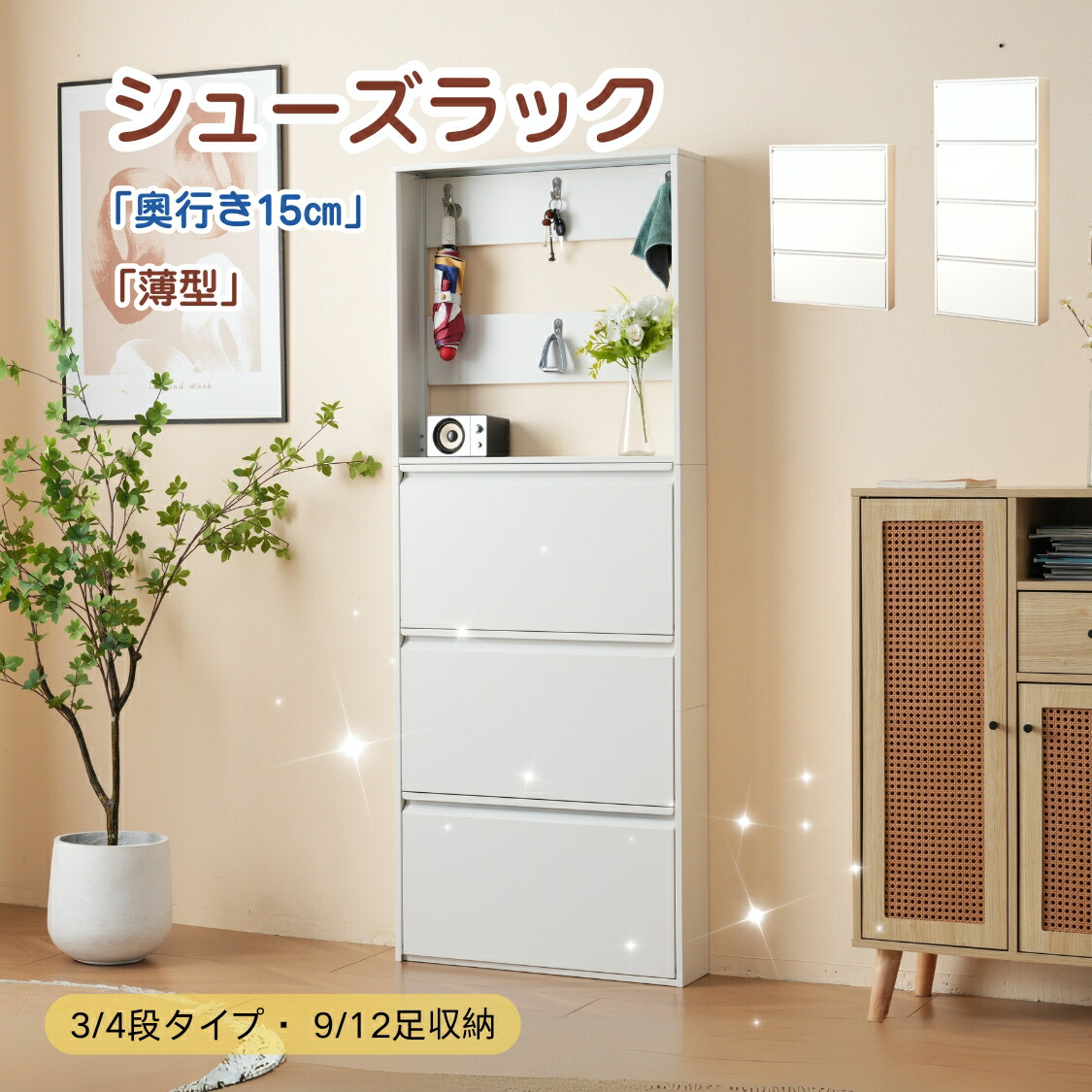 シューズラック スリム 靴箱 シューズボックス 下駄箱 省 スペース 超薄型 3段 4段 くつ箱 靴入れ 収納ラック エントランス 靴収納 木製下駄箱 一人暮らし おしゃれ 靴収納棚