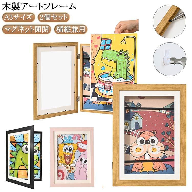 玄関 写真 画用紙 a3 子供の絵 ポスターフレーム マグネット 額縁 木製 絵 アートフレーム フォトフレーム 保存用 壁掛け 2個セット ポスター アート 学校 収納 作品 保管 ディスプレイ