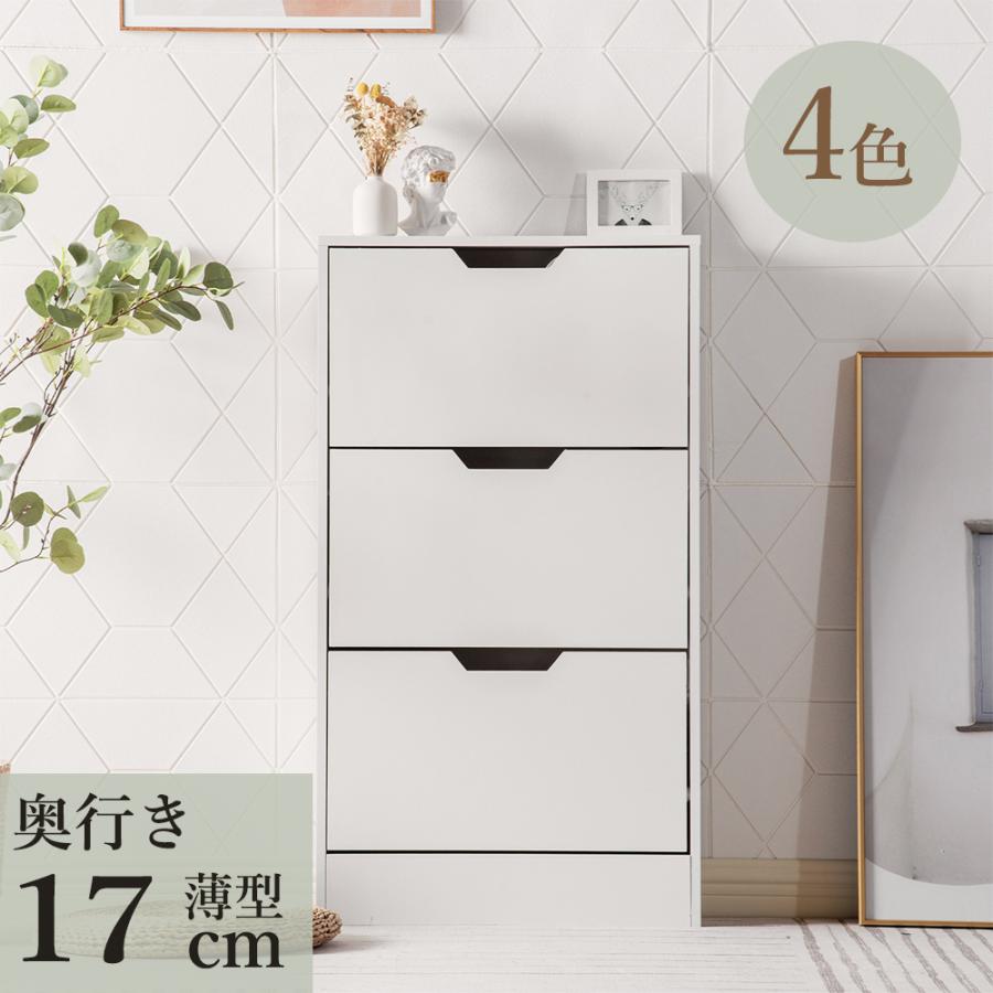 シューズボックス 3段 下駄箱 超薄型 奥行き17cm 幅60cm シューズラック 収納ラック エントランス 靴収納 靴収納棚 木製下駄箱 一人暮らし 靴入れ 超スリム型 マンション アパー おしゃれ