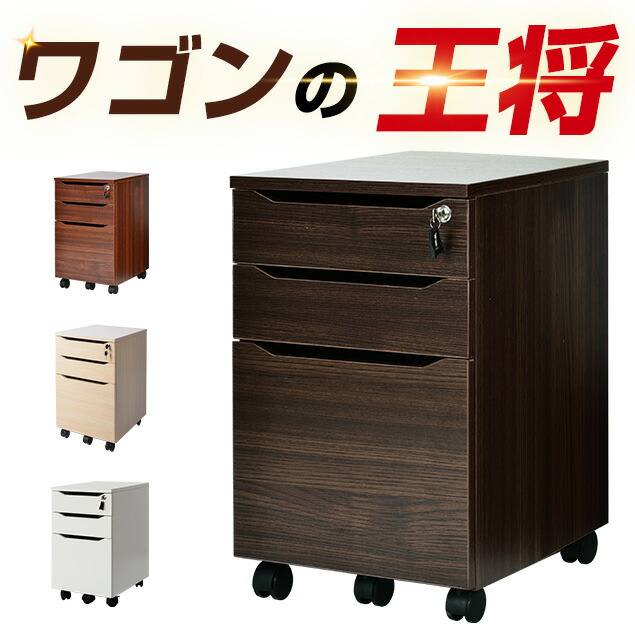 デスクワゴン サイドワゴン 大容量 完成品 3段 鍵付き キャスター付き ワゴン A4 ファイル オフィス 木製 収納 キャビネット 脇机 引き出し 事務机