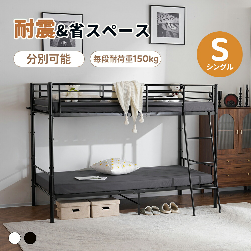 二段ベッド シングル 大人用 分別可能 高さ150CM 2段ベッド 上下分割 頑丈 耐荷重150kg パイプベッド 高級 省スペース 北欧風 大人 子供部屋 子供ベッド ベッド 一人暮らし