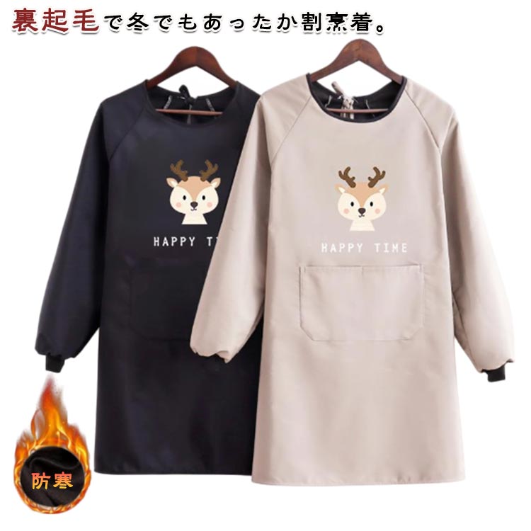 暖かい割烹着 おしゃれ 裏起毛 かっぽう着 レディース 撥水 冬用 秋冬 長袖 ロング丈 スモック エプロン 防寒 袖口リブ チュニック 保育士 家事用 かっぽうぎ 寒さ対策 袖カバー 腕カ 節電対策