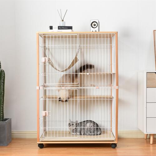 猫 ケージ 2段 木製フレーム キャットハウス ネコ ハウス 多段 留守番 保護 脱走防止 多頭飼い 多頭 スチール ハンモック付き 猫ドア付き キャスター付き 大型 猫ゲージ おしゃれ 広々