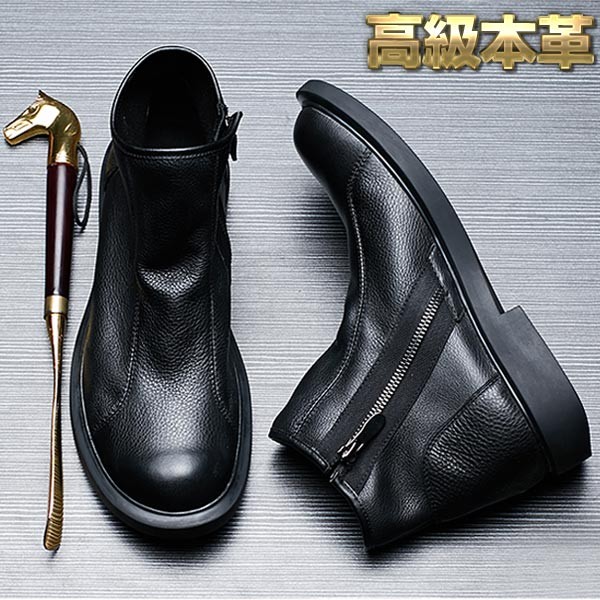 ブーツ メンズ 本革 ショートブーツ チェルシーブーツ サイドジッパー メンズ靴 カジュアル 紳士靴 耐摩耗性 天然牛革 高級感 ブラック 衝撃吸収