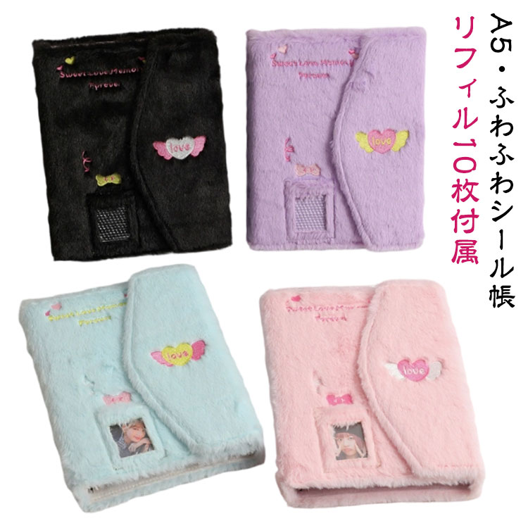 シール帳 A5 リフィル10枚付属 ふわふわ シール収納 カバー 手帳 バインダー 6穴リング カスタマイズ手帳 DIYデコ スケジュール帳 推し活 オタ活 持ち運び便利 シール手帳 グッズ