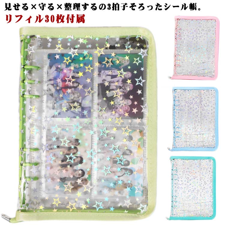 シール帳 バインダー A5 6穴 クリアバインダー 手帳 はがせる 透明 クリア シール台紙 トレカ収納 シールファイル カスタマイズ手帳 推し活 星柄 ジッパー手帳 バイ コレクションブック