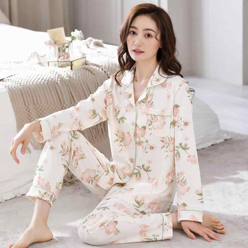 パジャマ レディース ミセス ママ 純綿 コットン 長袖 長ズボン ルームウェア セットアップ 前開き 襟付き 春秋秋冬 通気性 ワンマイルウェア 高級感 快適