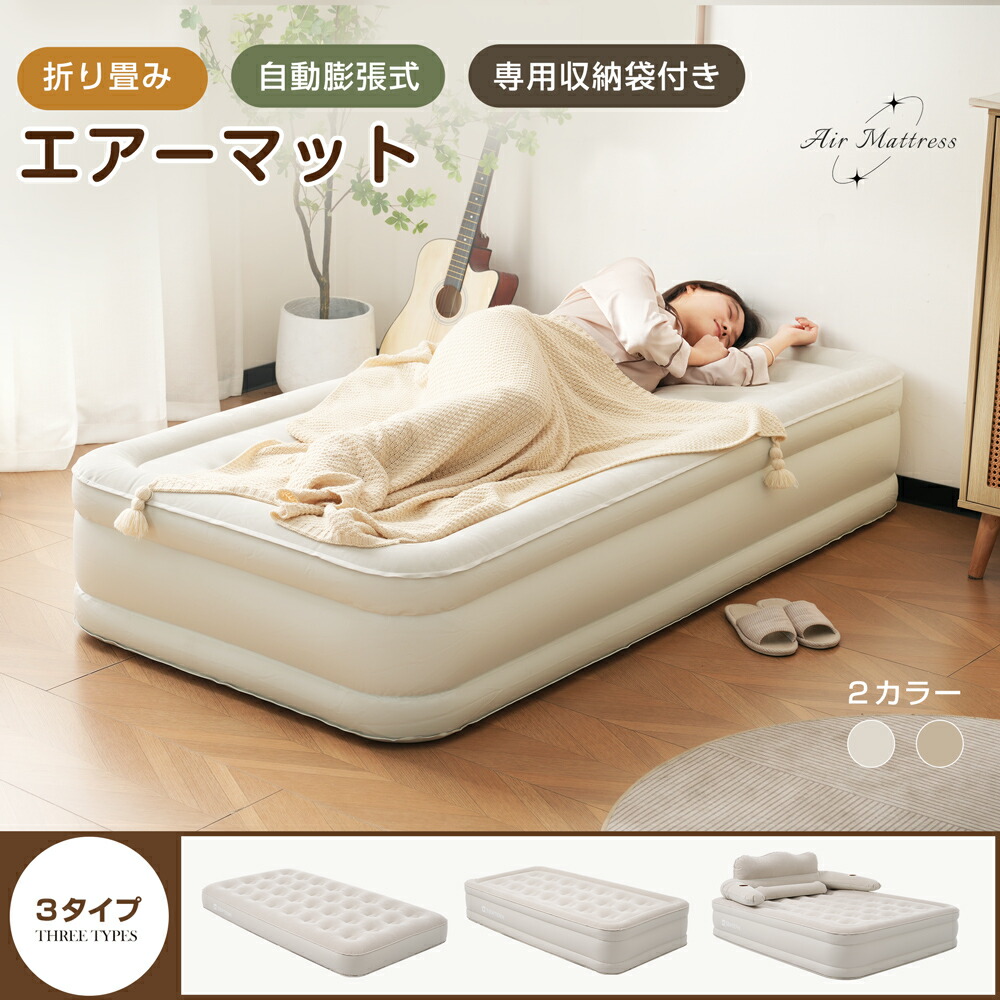 【レビュー特典あり】【新作販売推進中】【1年安心保証/送料無料】エアーマット エアーベッド 空気ベッド 25/40/47 ベージュ/グレー