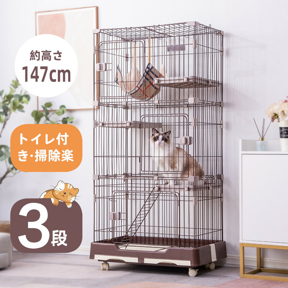 猫 ケージ 3段 ハンモック付 キャットケージ キャスター付 猫ゲージ おしゃれ キャットハウス ネコ ハウス 多段 留守番 保護 脱走防止 多頭飼い スチール ペットケージ 新作自信作 多頭