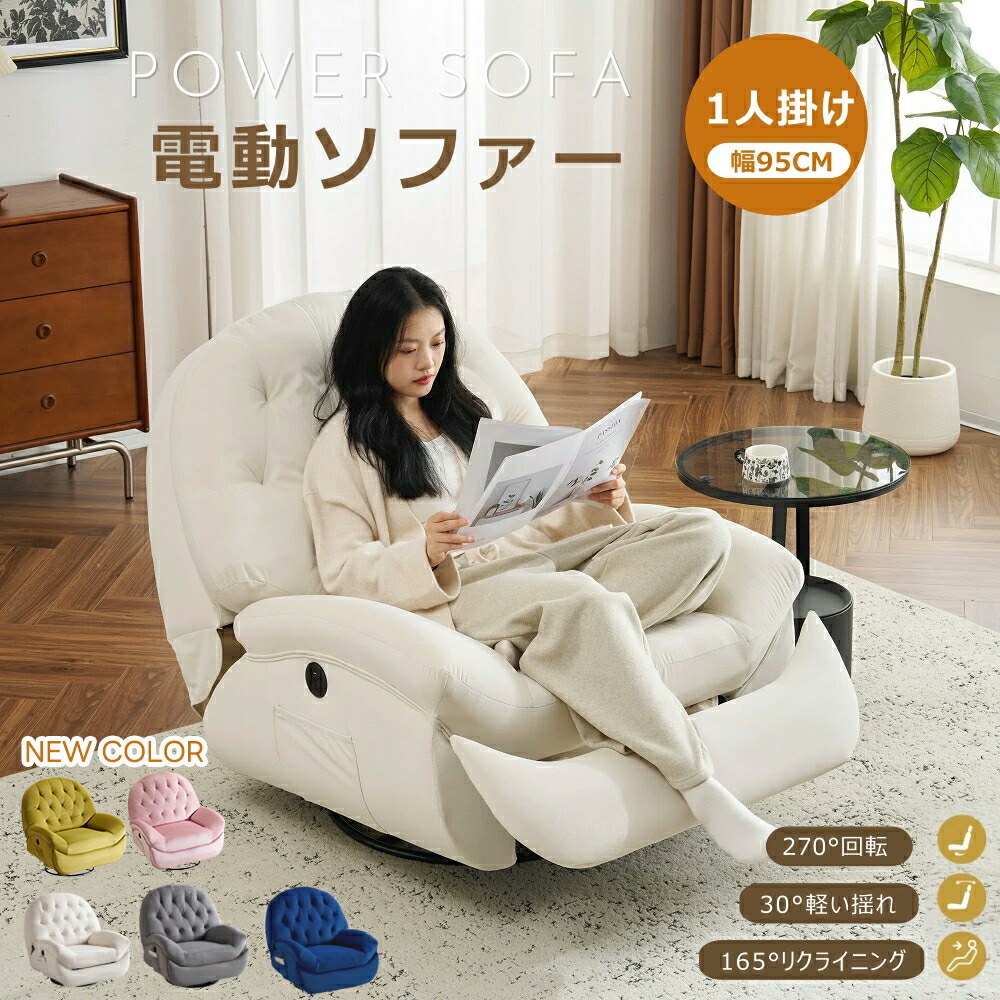 電動リクライニング ソファー 1人掛け 電動ソファー リクライニングソファ 165°無段階調整可能 USBポート付き ファプリック 背もたれ 耐圧分散 スマホ充電可 コンパクト 肘掛け