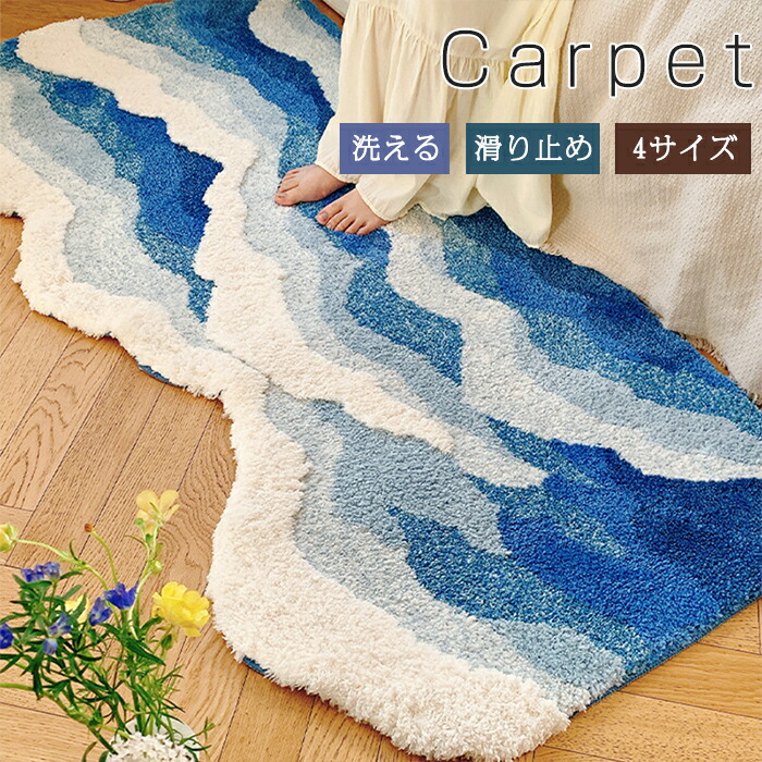 ラグ 洗える ラグマット ベッドサイドマット ボア チェアマット 滑り止め付き 海の波 アート 絨毯 可愛い おしゃれ 大判 厚手 異型 子供部屋 ベッドルーム フロアマット ソフト 敷 ロングマット