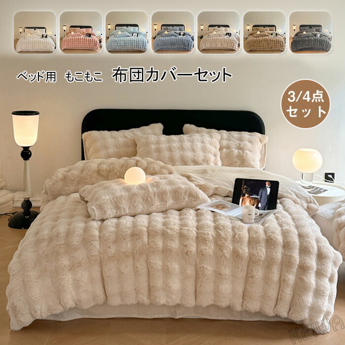布団カバーセット もこもこ 毛布 3点セット 4点セット シングル ダブル ラビットファー調 掛け布団カバー ベッドシーツ 枕カバー ふわふわ フェイクファー フランネル 保温 防寒 おしゃ あったか